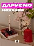 - набір із 3 білих свічок у червоне серденько – натуральні столові свчіки (висота 27 см, діаметр 2.5)